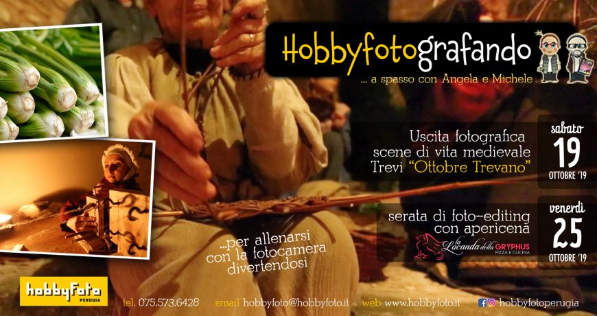 - la prima serata consiste in una uscita fotografica insieme ad Angela e Michele pronti a dispensare consigli. Sabato 19 ottobre andremo a fare un po’ di fotografie in una rievocazione di scene medievali che si svolgerà nel centro storico di Trevi durante l’ “Ottobre Trevano”. L’appuntamento è per le ore 20 a Trevi.