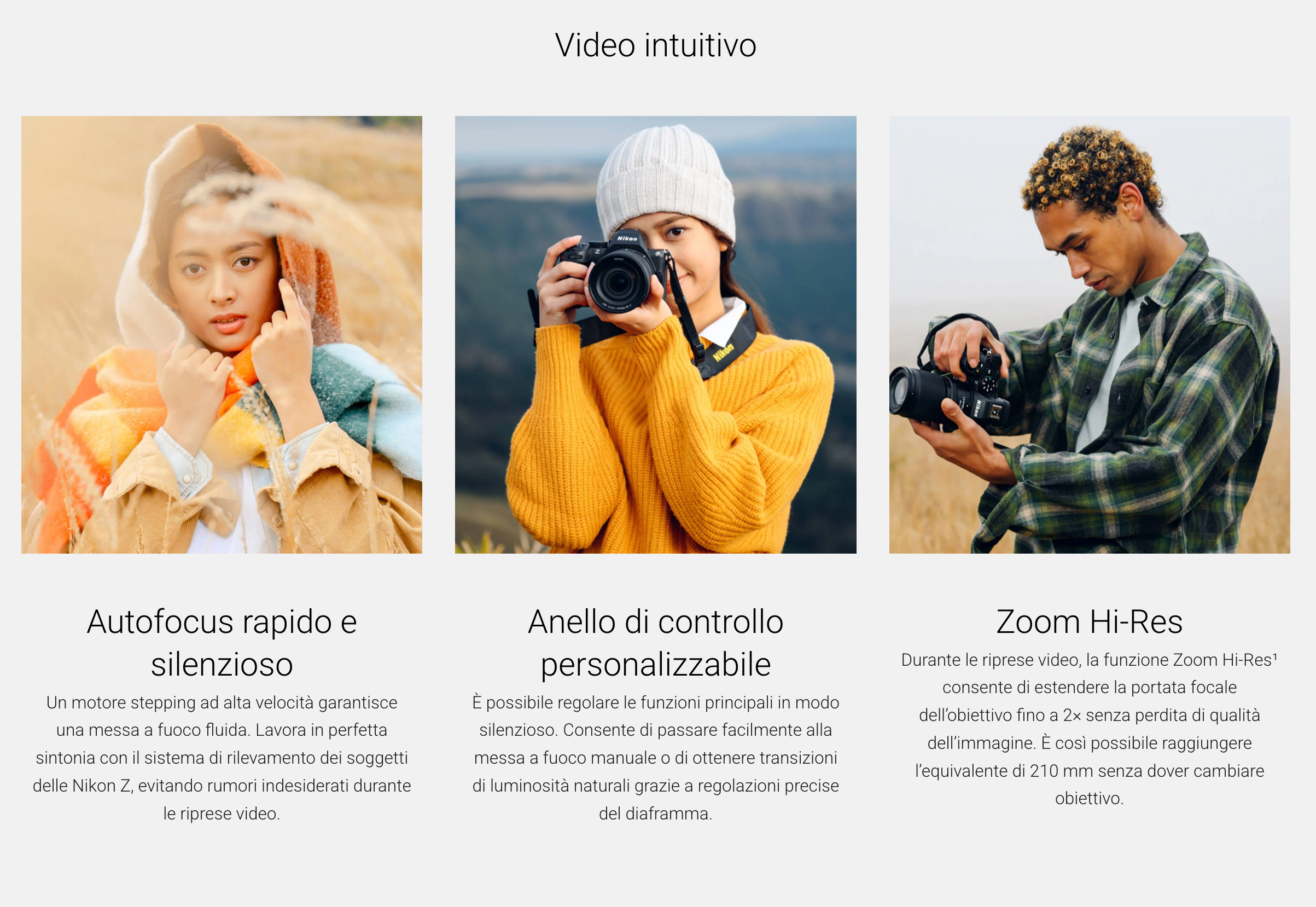un motore di messa a fuoco (STM) ad alta velocitaĚ€ offre un fluido AF discreto e silenzioso. Si integra perfettamente con il sistema di rilevamento dei soggetti delle fotocamere Z, e i “rumori” di regolazione della messa a fuoco non rovineranno le tue sequenze video.