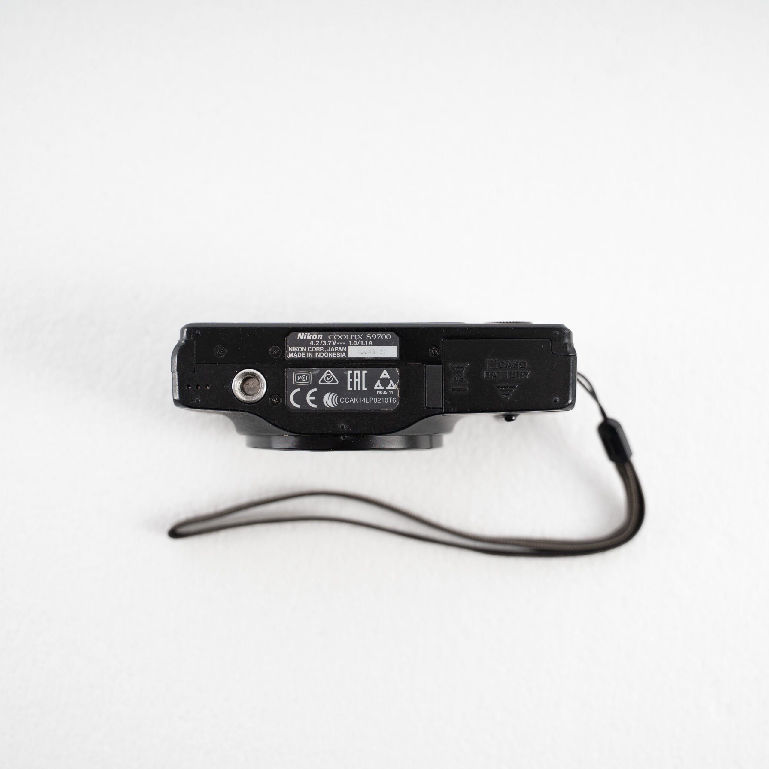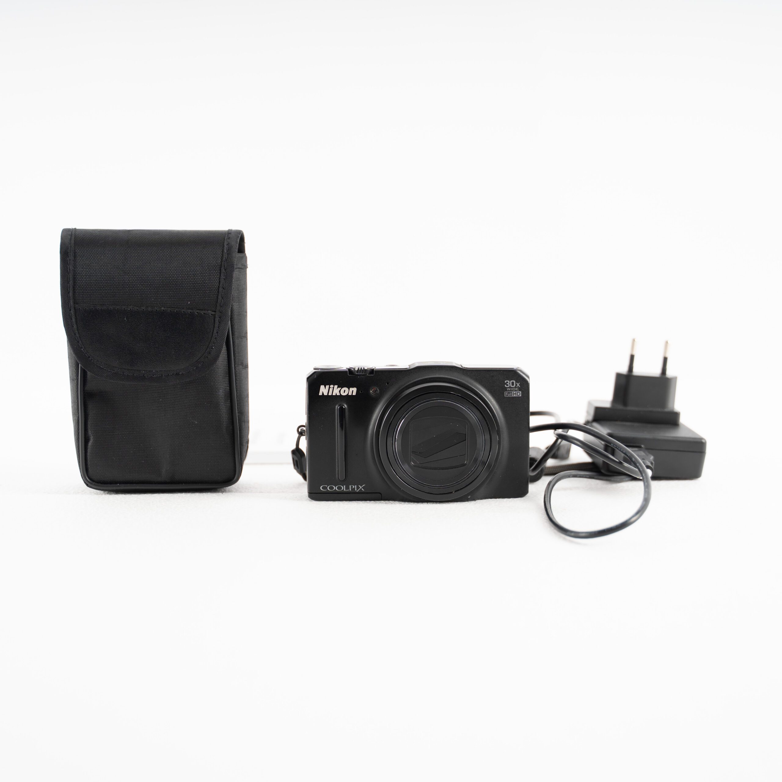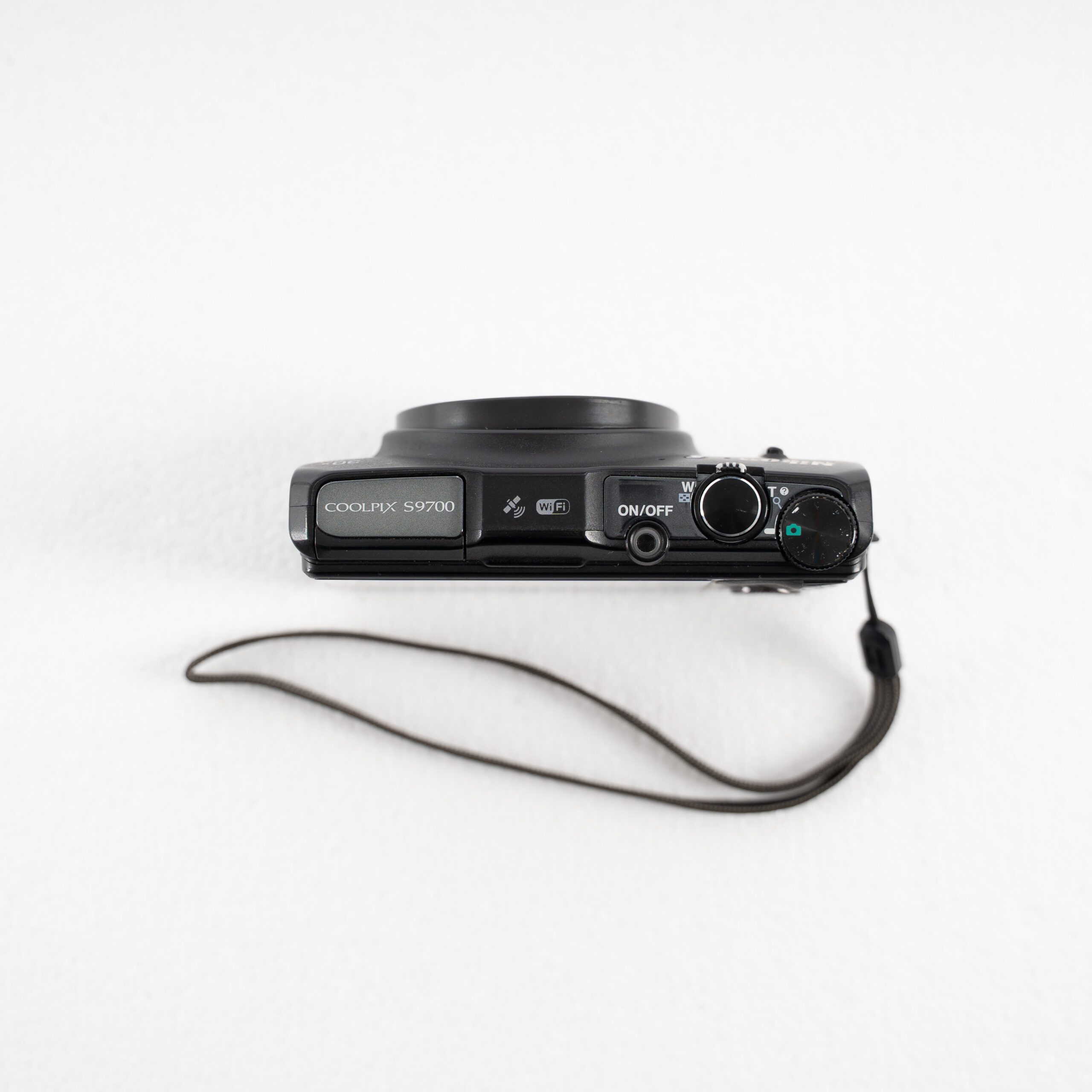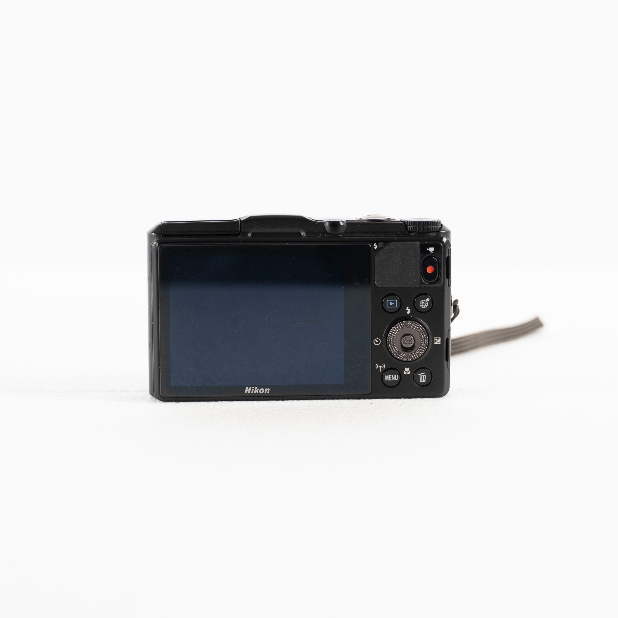 UsatO. Fotocamera digitale Nikon Coolpix S9700 black, con evidenti segni di usura dati dall’utilizzo.